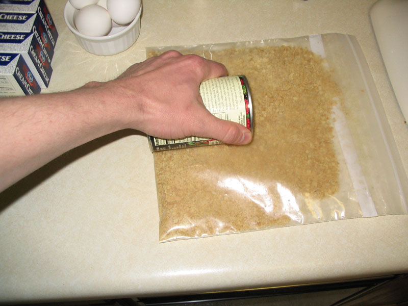 Smash the shit out of them until they are crumbled. I am using a can of something or other but you can use a rolling pin or even skip this and do it in a food processor.