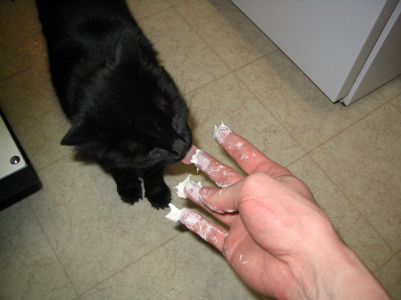 Your cat can help you with the extra cream cheese. Wash your fucking nasty cat-slobber hands with soap and water before you continue.