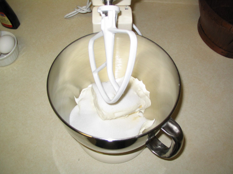 Put the cream cheese and the sugar into your mixing bowl and mix on low-medium speed for 3 minutes.
