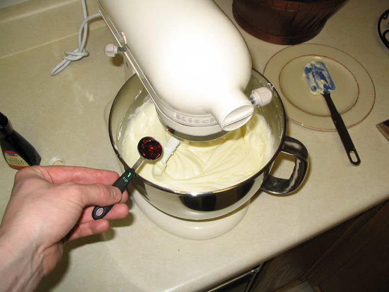 Now add the vanilla and the lemon juice. Mix for another minute or so.
