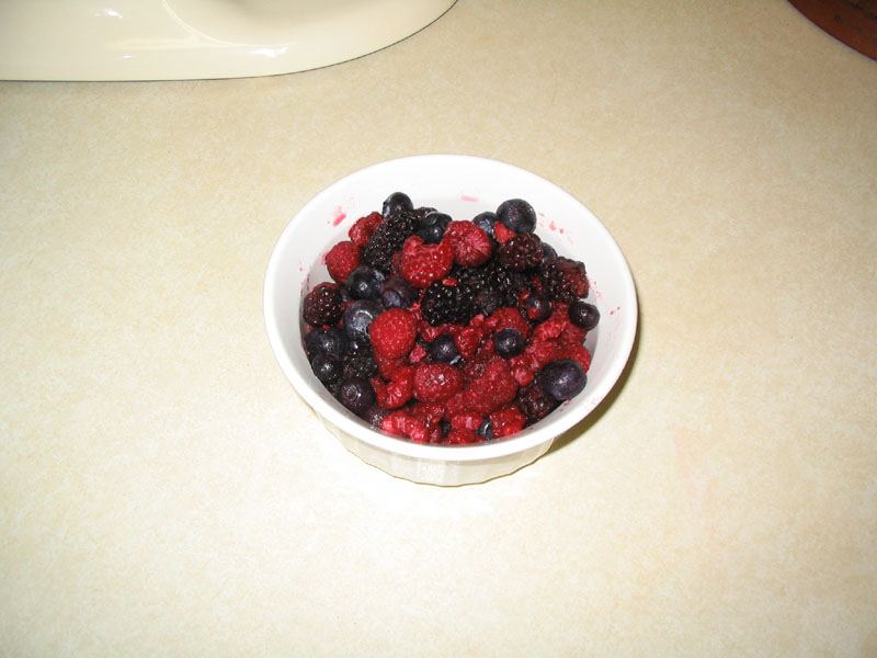 - 1 1/2 cups mixed berries or sliced strawberries (frozen are ok)