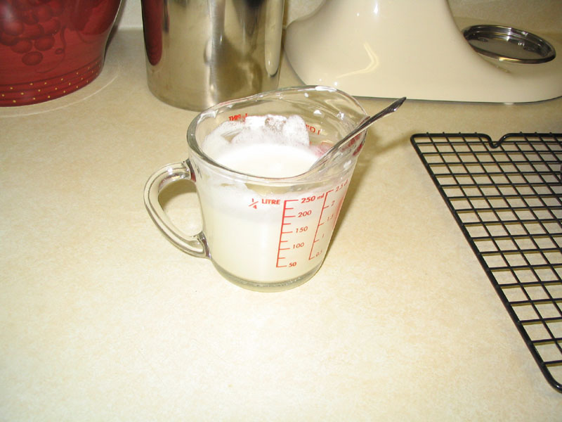 Meanwhile you can mix up your topping. Simply stir the sour cream, sugar, lemon juice and vanilla together.