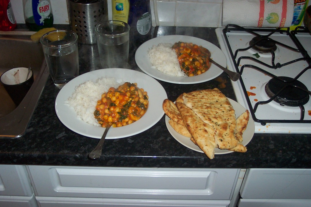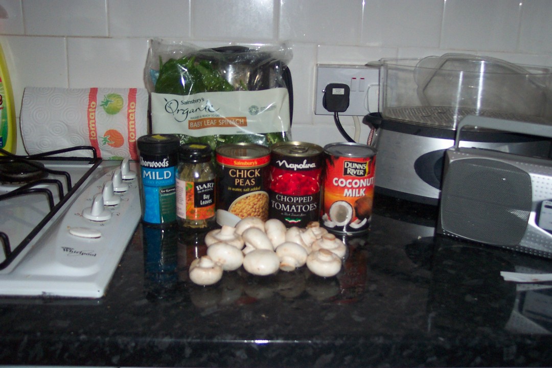 I've got a dish that I cook quite often, thanks to how simple and tasty it is Here is a step-by-step of how to make a rather pleasant vegetable curry for your evening meal. It takes about 30 minutes from start to finish, including preparation. Total cost is probably around £4 or $7 for two. I'm sorry the pictures are large, I'm having problems with my iBook's Adobe CS install, and my backup machine is gone too...
