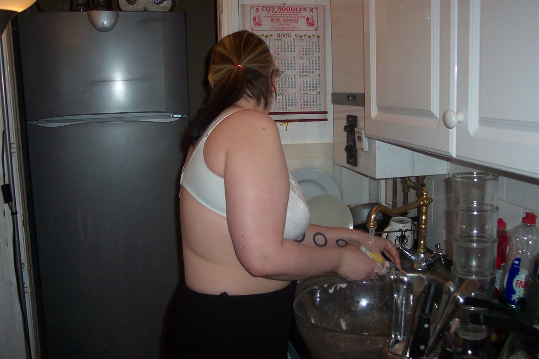 Now, it doesn't look great does it? Well, nevermind - just sit that baby right there on high and let all the liquid reduce down. Assault your girlfriend (goon: Appojus) with the camera while she washes plates.