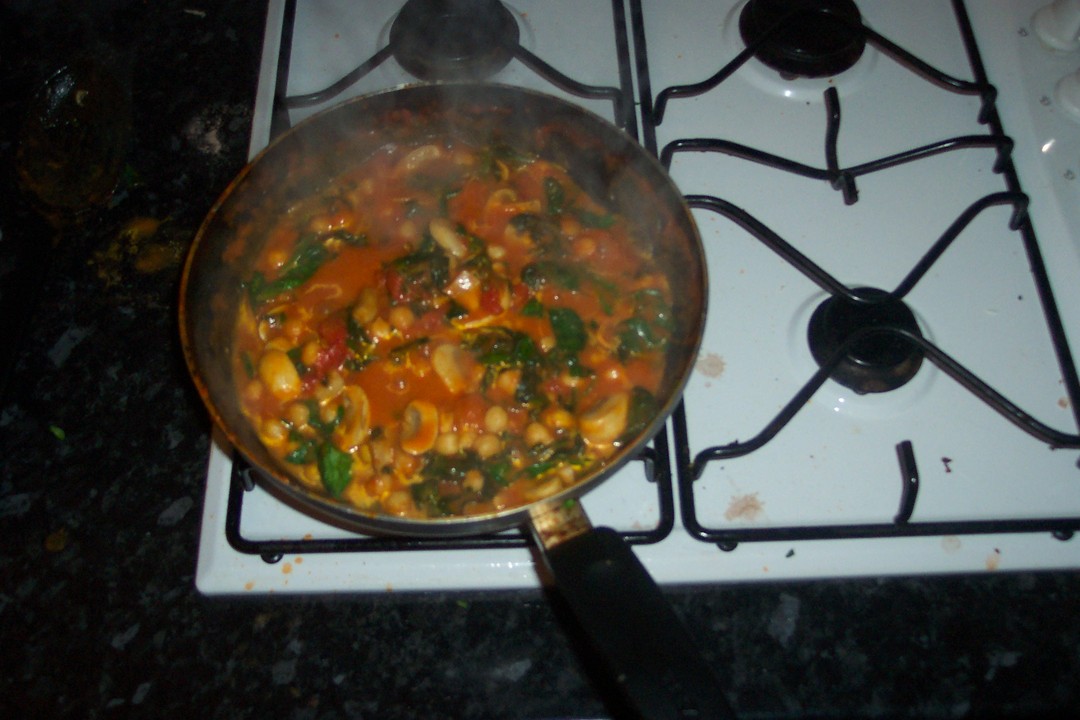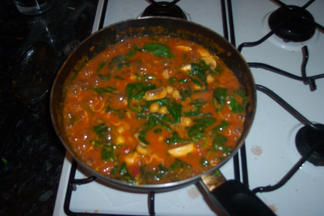 Now the spinach is in, let it reduce down for another 10-15 minutes. Your chickpeas should be nice and tender, the spinach will be soft and the 'sauce' should be nice and gloopy thick