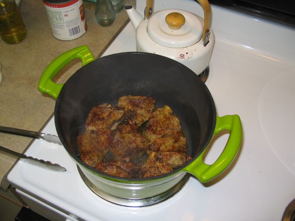 Cover and cook for 2ish hours (shanks would have been 3 or 4). Keep the heat very low, you just barely want to keep a simmer.