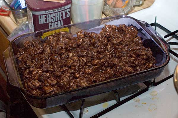 Spray your pan with non-stick cooking spray (important!) and then spread your Smorz mixture evenly in the pan. Let cool and you're done! Cut into pieces and enjoy! (In spite of what the pictures show, smorz treatz actually do taste pretty good.)