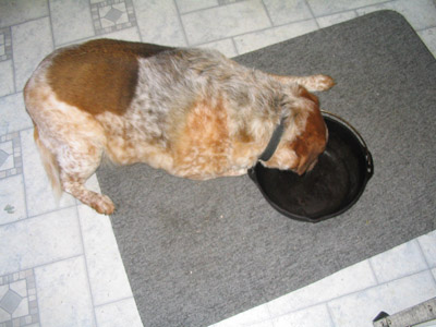 At this point, the dog should wander in and start making eyes at you because he smells pork. This is perfectly normal, ignore it.