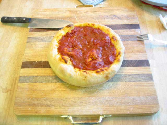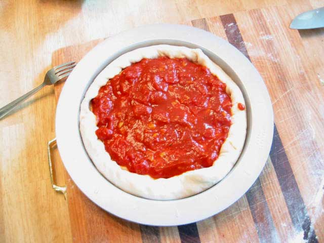 This recipe makes two 9" stuffed pizzas. It takes about 3 hours from start to finish.