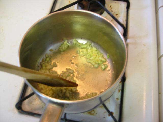 While you wait for the dough to rise, get started on the pizza sauce. Heat up your pot and put some olive oil in there after it's hot. Immediately throw in the minced garlic and a pinch of salt. Please excuse the messy stove, I've been too busy to cook much lately and my roommates haven't been cleaning up after themselves