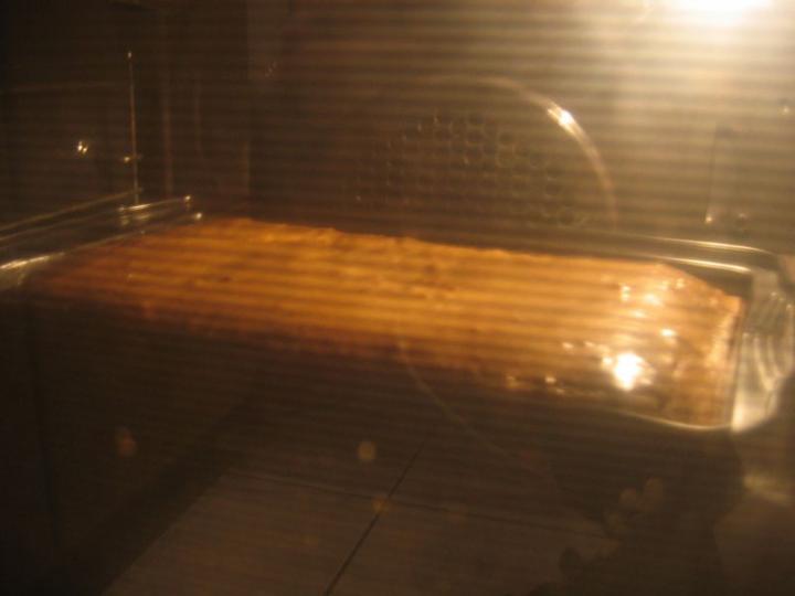 Preheat your oven to 180° Celsius (360° Fahrenheit). Put some backing paper on the bottom of the baking dish and grease the sides.