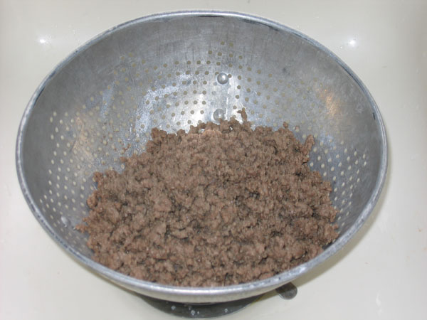 Once the beef is browned you'll need to drain it through a strainer as such (Do not run water through it).