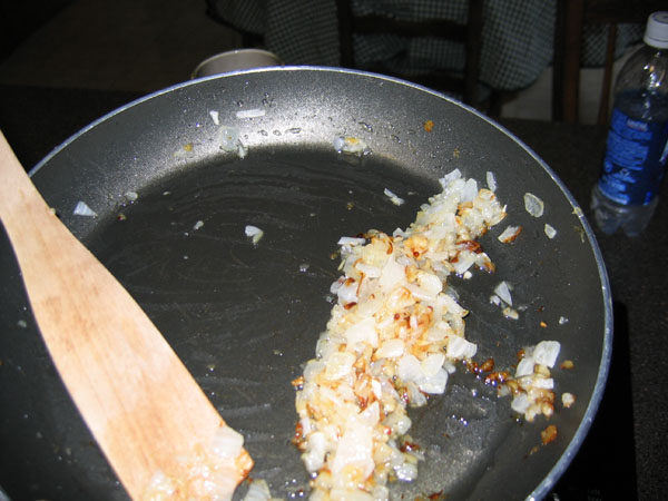 Alright to start out you'll need a large skillet and a big pot. In the skillet dab some vegitable oil into it & put in your onion and about 1 Tbsp of minced garlic and put it the temperature around 6.