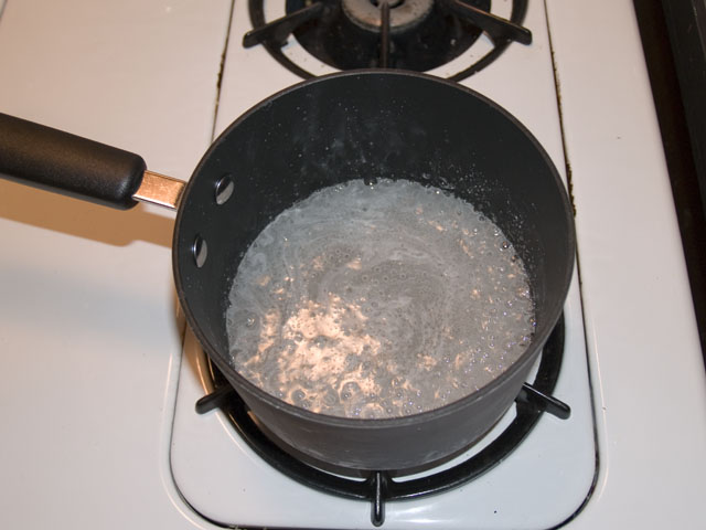 First, cook the maple syrup, (the real stuff, not Aunt Jemimah, and yes, it will be a bit pricey), in a medium saucepan over low heat for about 7 minutes, until it's reduced to 3/4 cup.