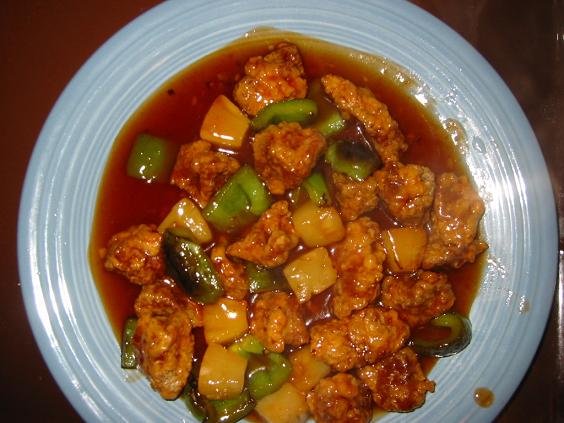 People who say sweet and sour pork isn't real Chinese food are full of shit. This, however, is slightly different from the US takeout version and is a lot like what you'd find in a restaurant in Hong Kong, where the recipe I used came from. The main difference is that you can actually taste the sour; all that vinegar gives it a pretty good kick. If you want something more like the westernized version, it should be simple to change the proportions for the sauce. This recipe is really pretty easy, but it will probably impress people who consider Restaurant Food to somehow be unattemptable.