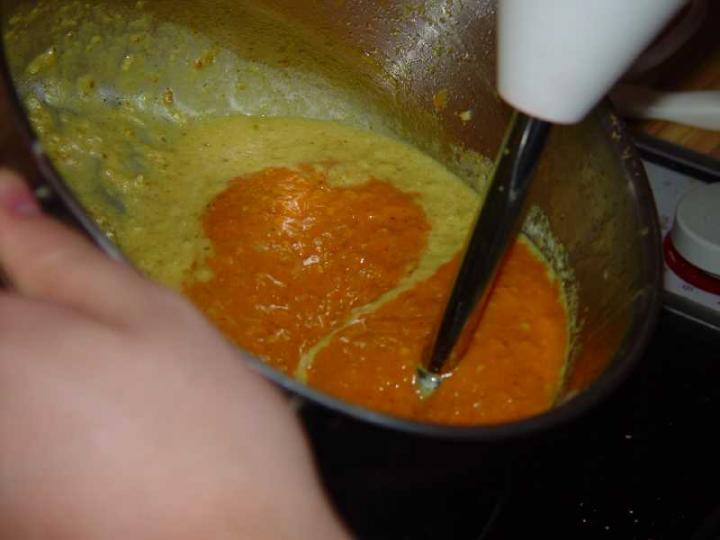 Add about 300ml of water, and get your blending wand ready- because your going to blend it until it's a fine paste.