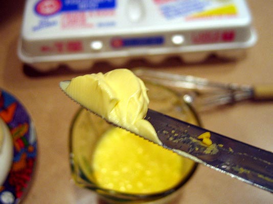 NOW PUT IN ABOUT YEAH MUCH BUTTER, GOD DAMN YOU. Don't forget to lick the cheesy-butter knife when you're done