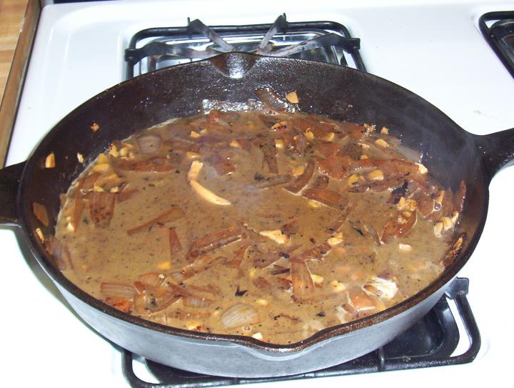 Brown the chicken but don't cook all the way through. Remove it from your pan and place to the side.