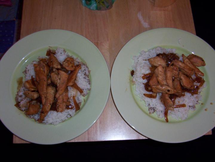 Spoon sauce over chicken. A bed of white rice goes great with it.