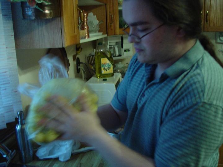I had my lovely assistant take care of that (as well as most of the chopping), since you might not have a lovely assistant you'll have to do it yourself.